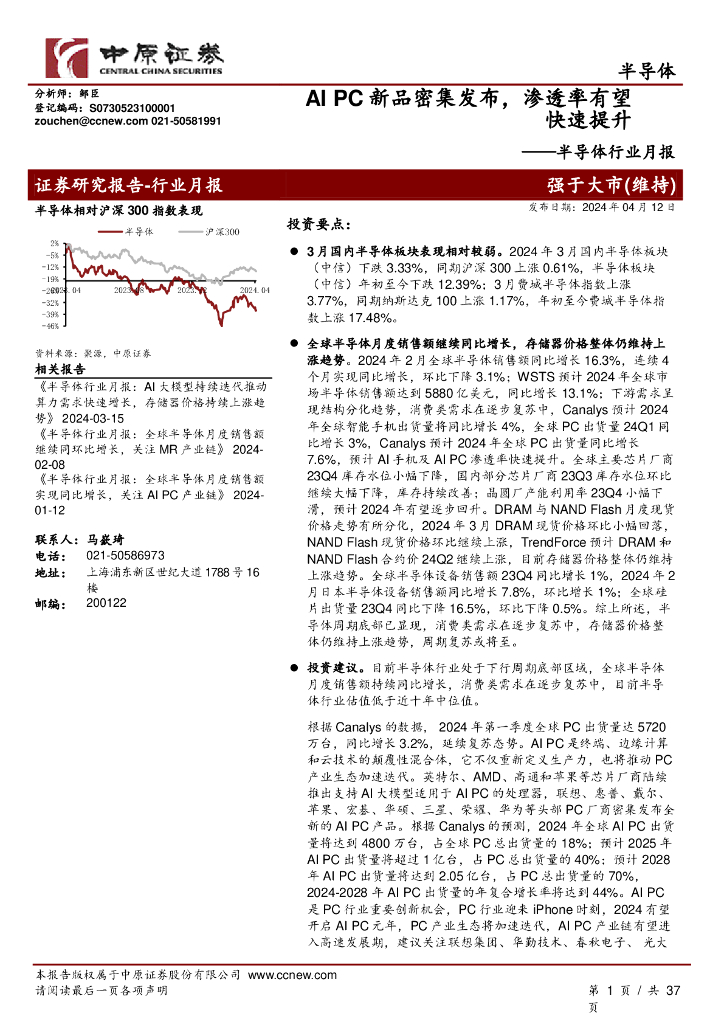 中原证券:半导体行业月报:AIPC新品密集发布,渗透率有望快速提升.pdf