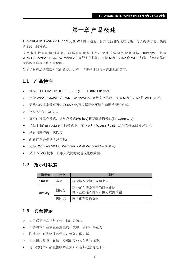 TP-LINK 11N无线 PCI网卡 TL-WN851N/TL-WN951N 配置指南.pdf