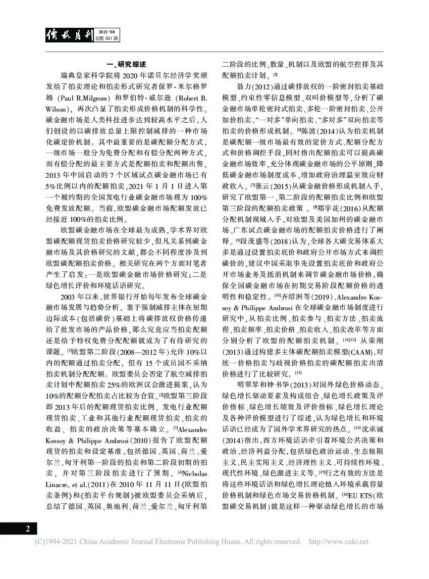 田永:COVID-19疫情前后欧盟碳金融市场的配额拍卖价格及启示——基于碳达峰、碳中和背景.pdf