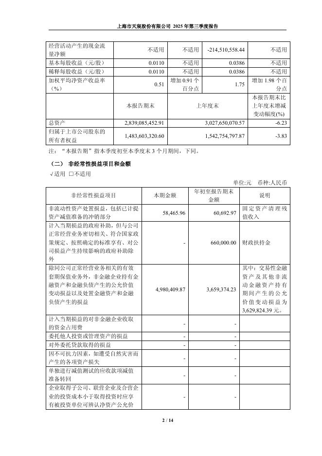 600620-天宸股份:上海市天宸股份有限公司2025年第三季度报告.pdf