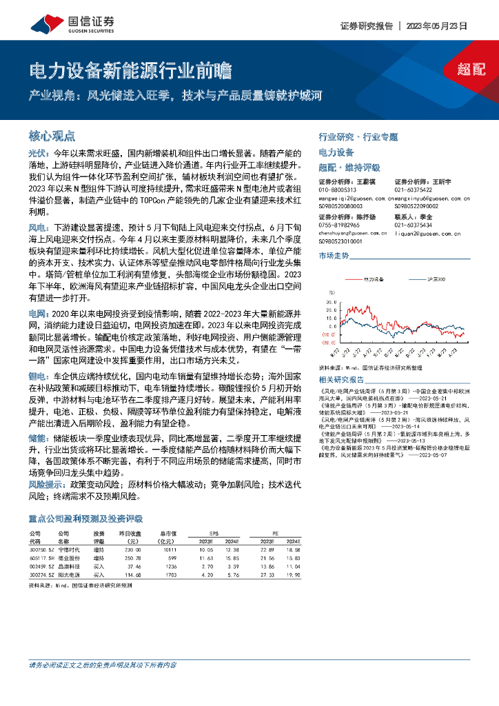 国信证券:电力设备新能源行业前瞻:产业视角:风光储进入旺季,技术与产品质量铸就护城河.pdf