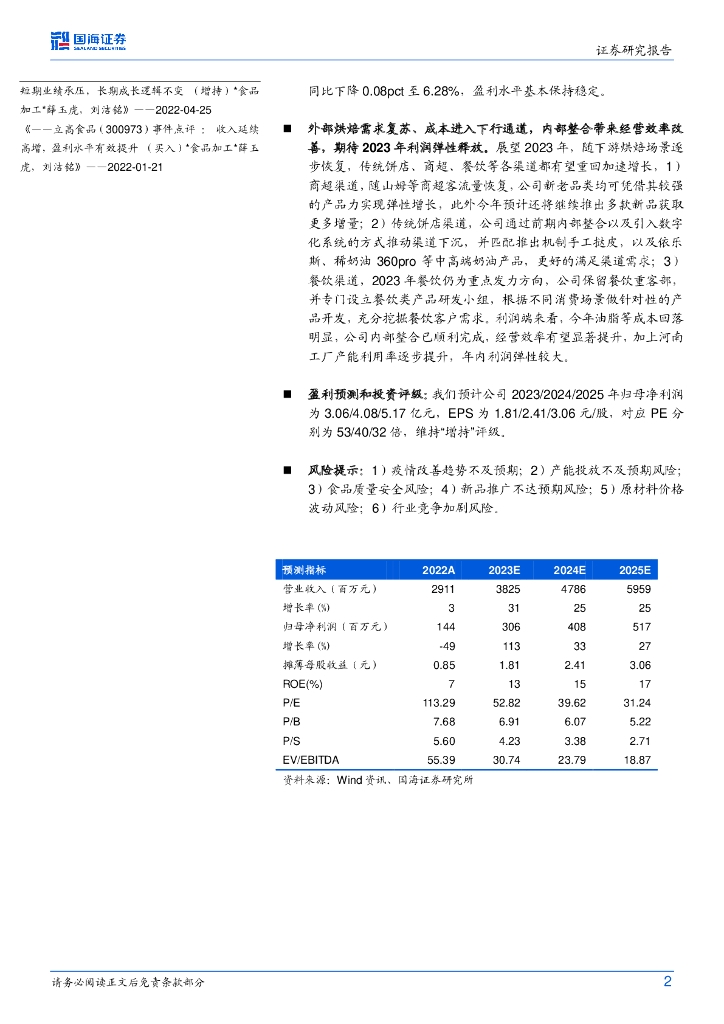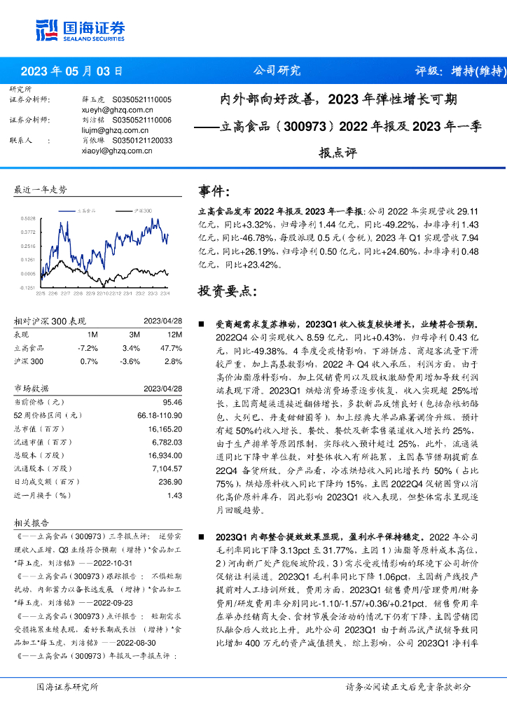 国海证券:立高食品(300973)-2022年报及2023年一季报点评:内外部向好改善,2023年弹性增长可期.pdf