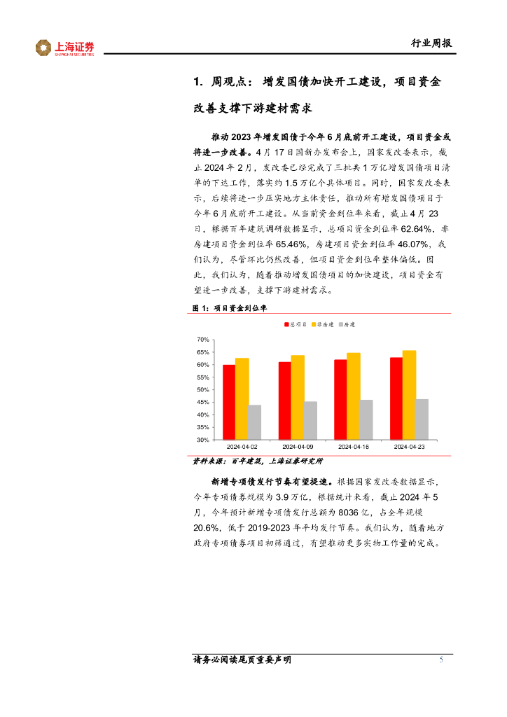 上海证券:建筑材料行业周报:增发国债加快开工建设,项目资金改善支撑下游建材需求.pdf