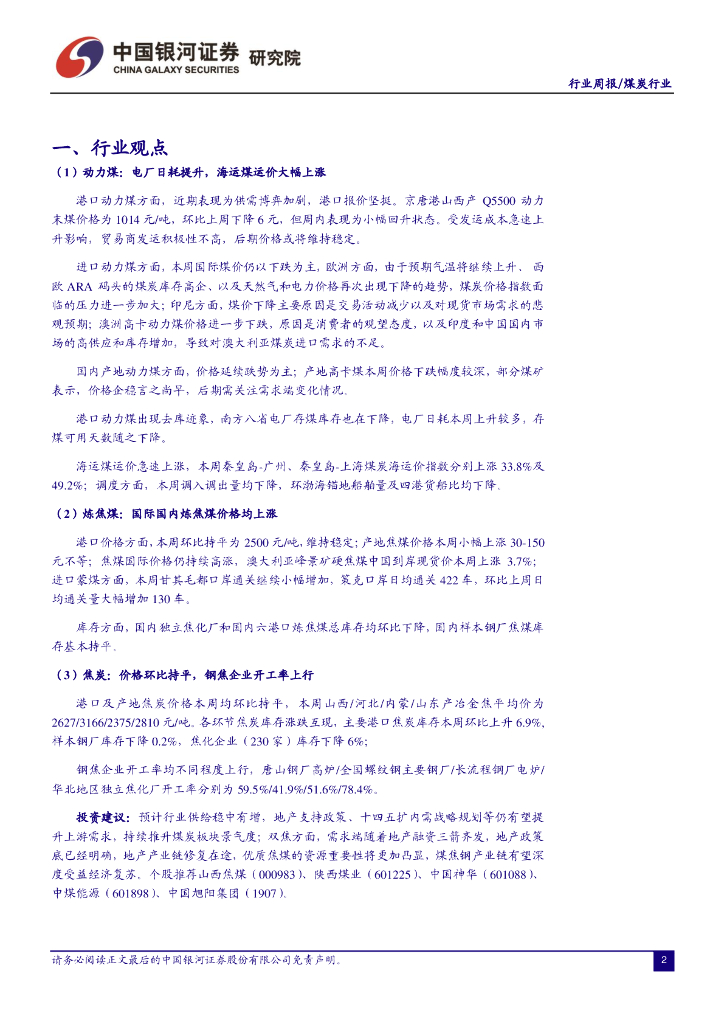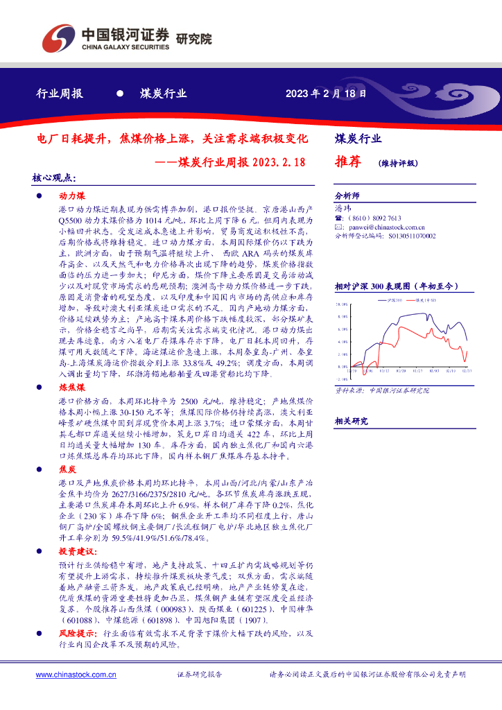 中国银河:煤炭行业周报:电厂日耗提升,焦煤价格上涨,关注需求端积极变化.pdf