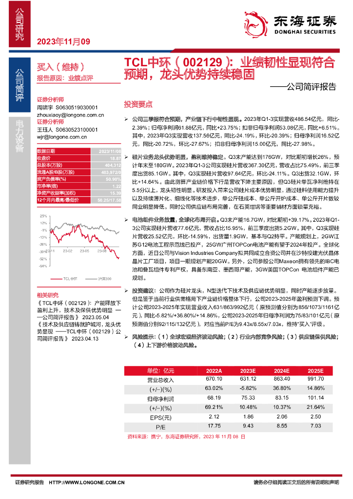 东海证券:TCL中环(002129)-公司简评报告:业绩韧性显现符合预期,龙头优势持续稳固.pdf