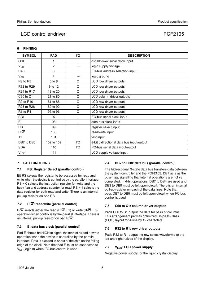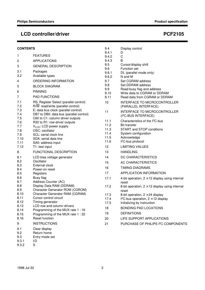 PHILIPS PCF2105 LCD controller/driver 数据手册.pdf