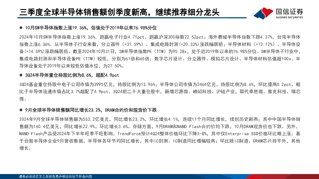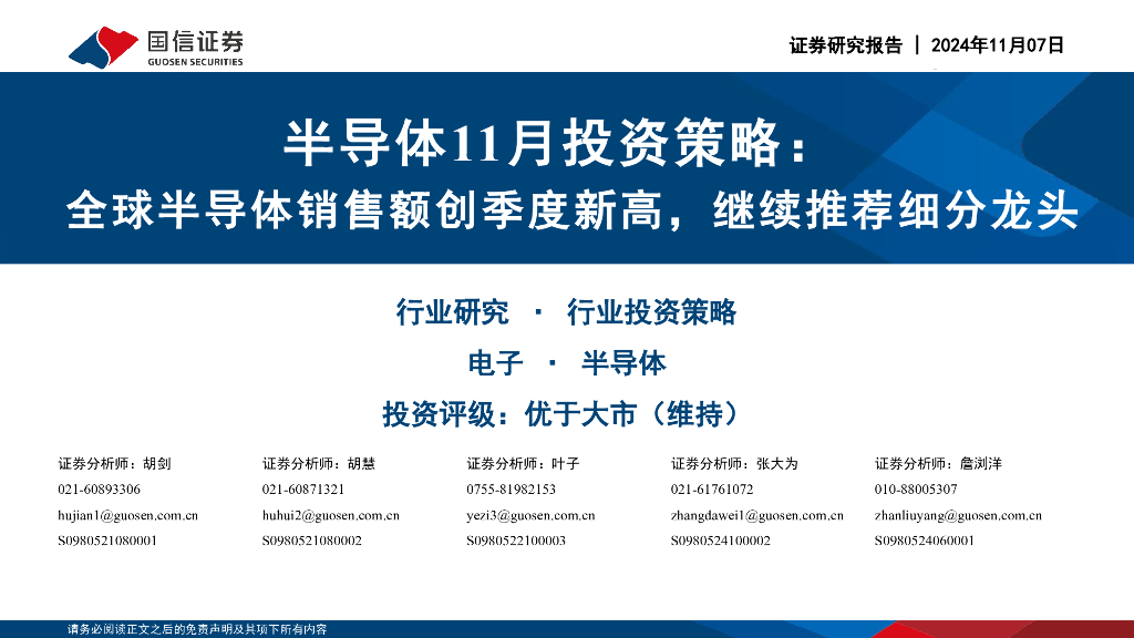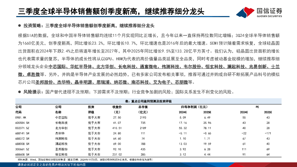 国信证券:半导体11月投资策略:全球半导体销售额创季度新高,继续推荐细分龙头.pdf