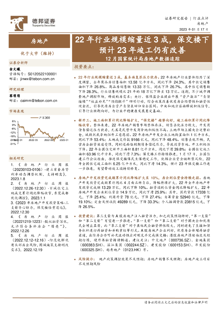 德邦证券:12月国家统计局房地产数据追踪:22年行业规模缩量近3成,保交楼下预计23年竣工仍有改善.pdf