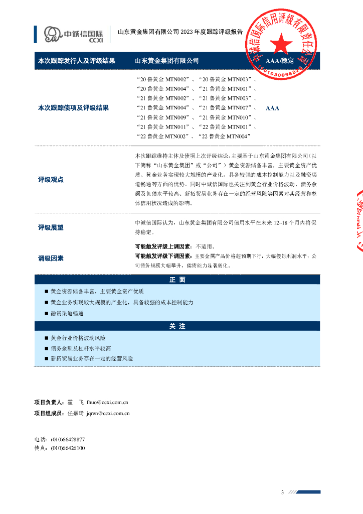 中诚信:山东黄金集团有限公司2023年度跟踪评级报告.pdf
