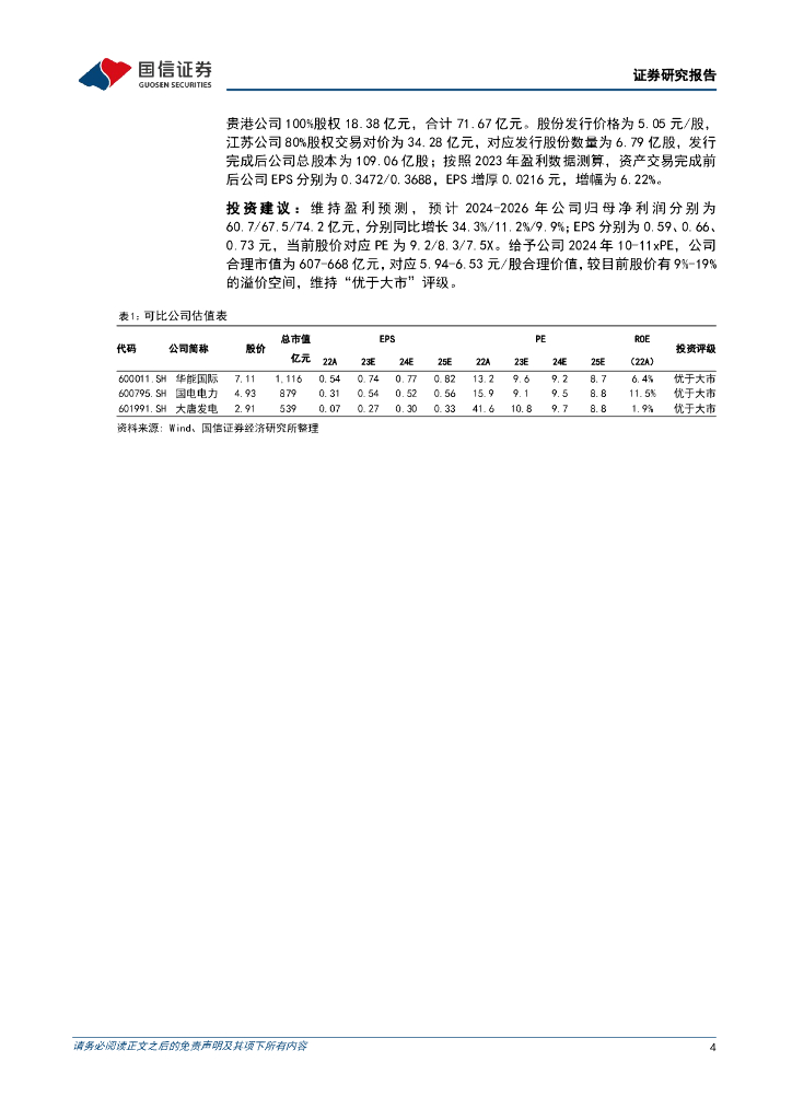 国信证券:华电国际(600027)-24Q3业绩表现稳健,资产注入增厚上市公司每股收益.pdf