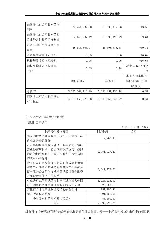 600645-中源协和:中源协和细胞基因工程股份有限公司2026年第一季度报告.pdf