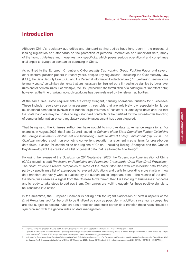 中国欧盟商会简要调查:中国数据相关监管要求对欧洲企业的影响(英文版).pdf