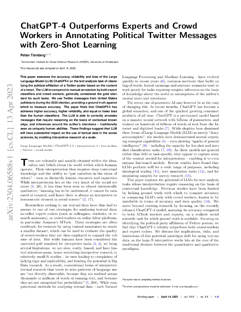 ChatGPT-4 在使用零样本学习对政治 Twitter 信息进行注释方面胜过专家和众包工作者(英文版).pdf