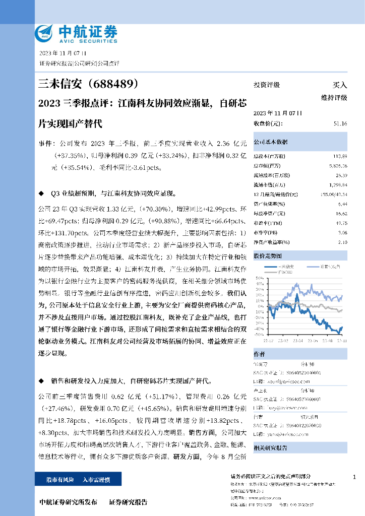 中航证券:三未信安(688489)-2023三季报点评:江南科友协同效应渐显,自研芯片实现国产替代.pdf