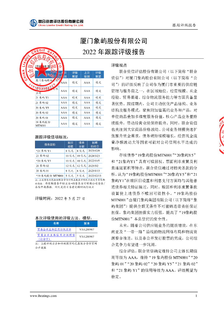 联合资信:关于《厦门象屿股份有限公司2022年跟踪评级报告》的更正说明及更正后文件.pdf