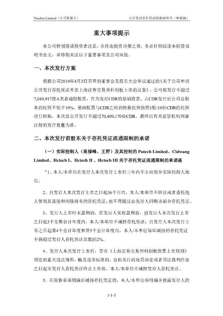 九号有限公司上交所科创板IPO上市招股说明书.pdf