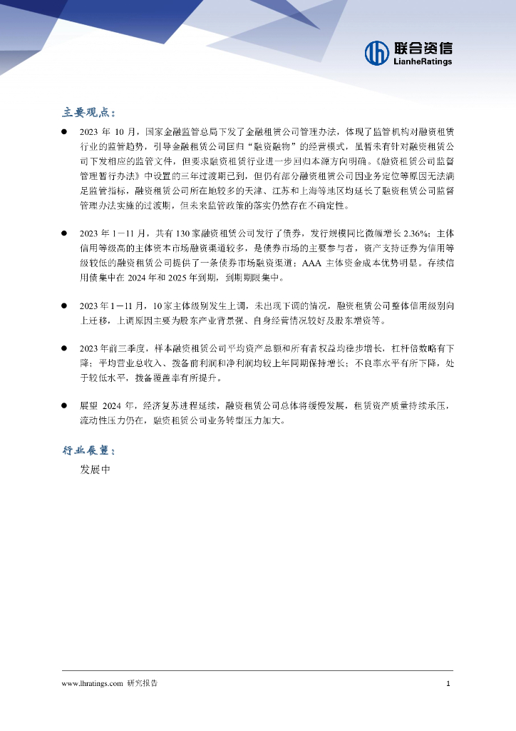 联合资信:融资租赁行业2023年回顾与2024年展望报告.pdf