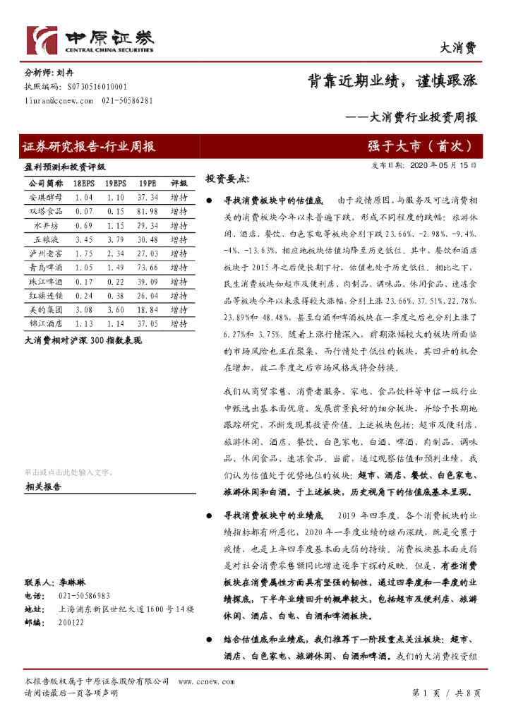 中原证券:大消费行业投资周报:背靠近期业绩,谨慎跟涨.pdf