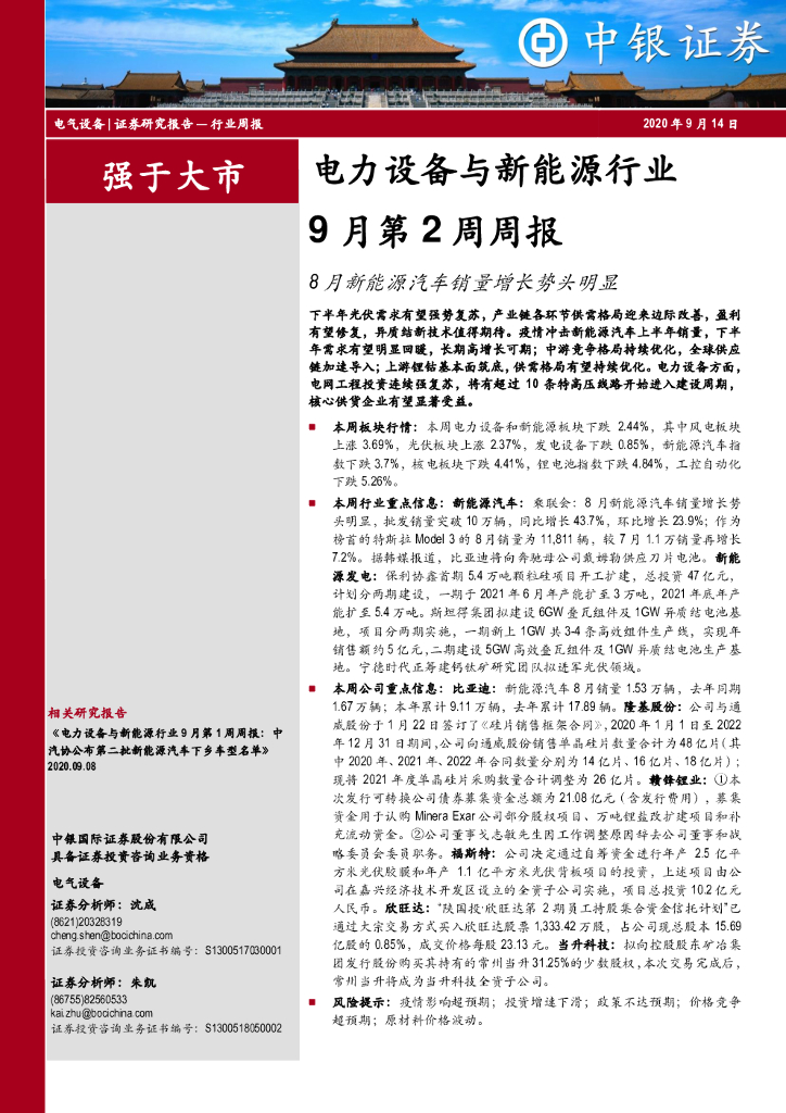 中银证券:电力设备与新能源行业9月第2周周报:8月新能源汽车销量增长势头明显.pdf
