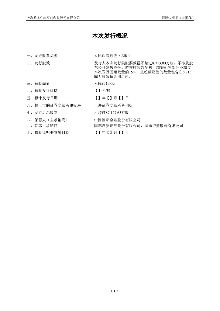上海君实生物医药科技股份有限公司上交所科创板IPO上市招股说明书.pdf