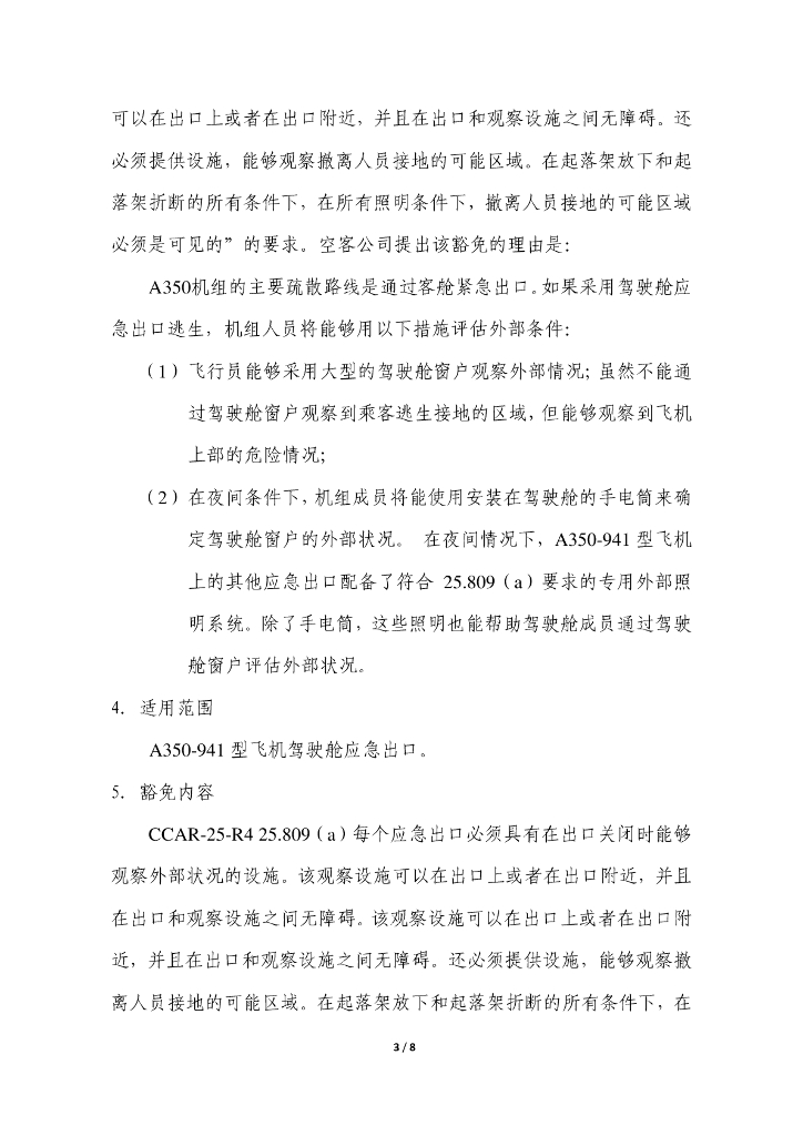 A350-941飞机驾驶舱应急出口豁免CCAR-25-R4 25.809(a).pdf