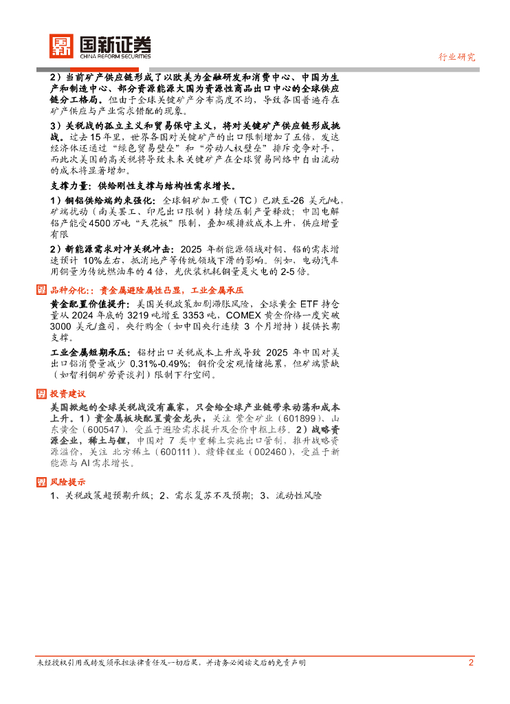国新证券股份:有色金属行业:美国掀起全球关税战,对有色金属行业影响点评.pdf