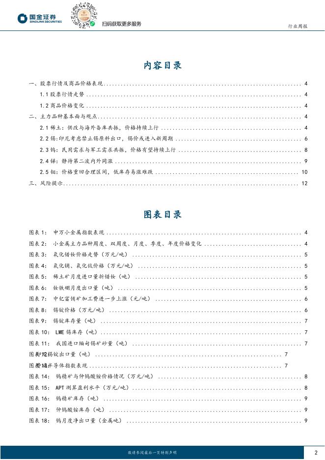 国金证券:有色金属行业小金属双周报:继续看多稀土、钨板块,锡价或迎拐点.pdf