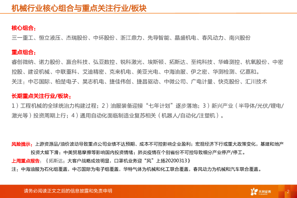 天风证券:机械设备行业研究周报:MASKS分析:国内疫情缓和后,哪些周期将恢复上行趋势?.pdf