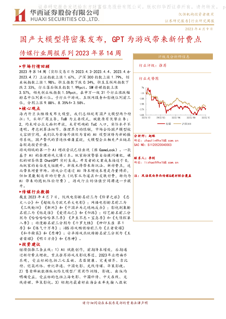华西证券:传媒行业周报系列2023年第14周:国产大模型将密集发布,GPT为游戏带来新付费点.pdf
