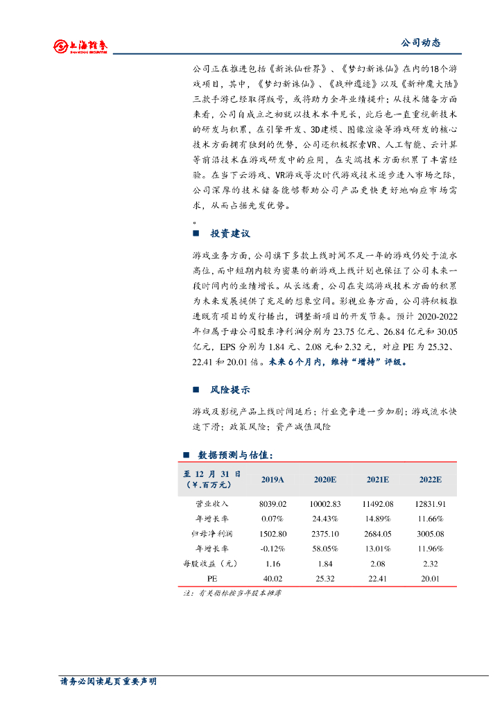 上海证券:完美世界(002624)-产品储备丰富+布局前沿技术,游戏业务有望持续高增长.pdf