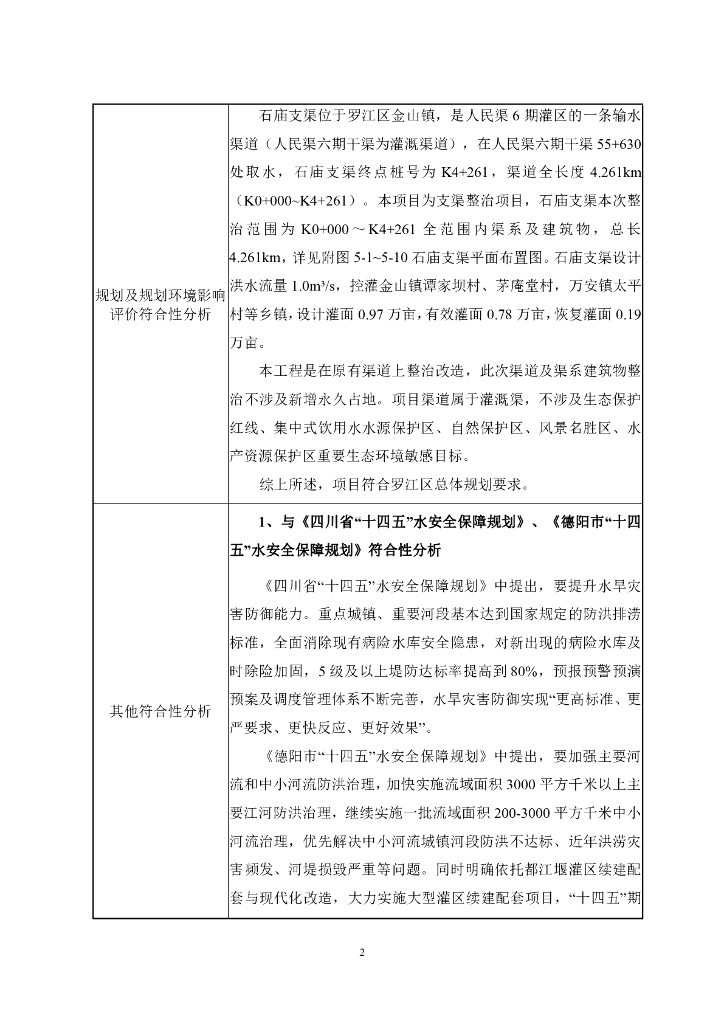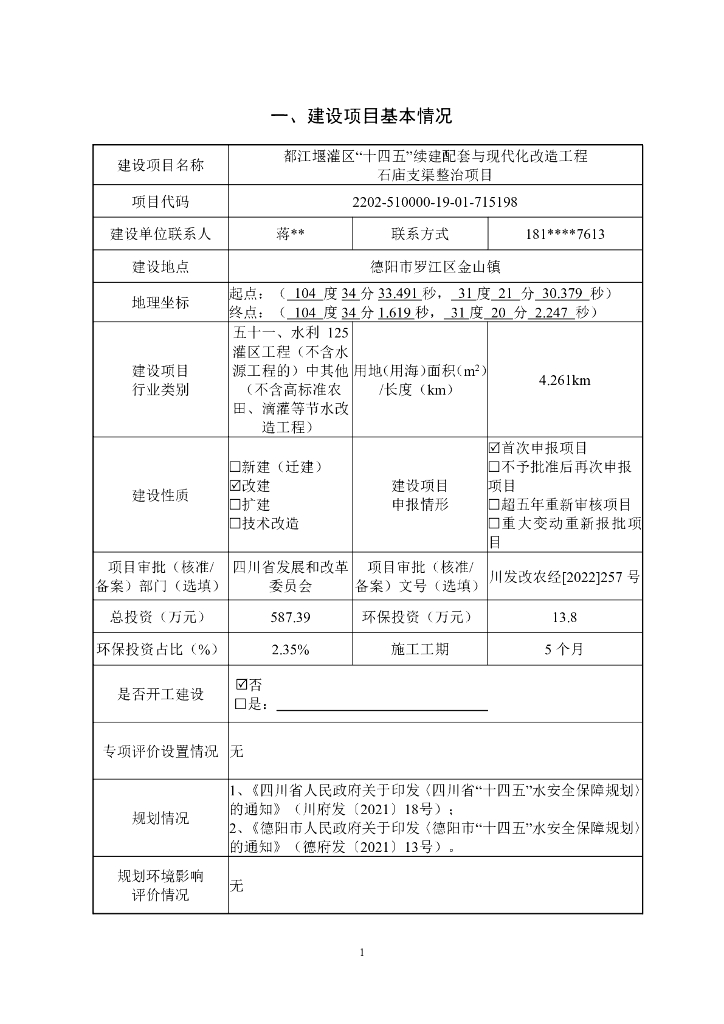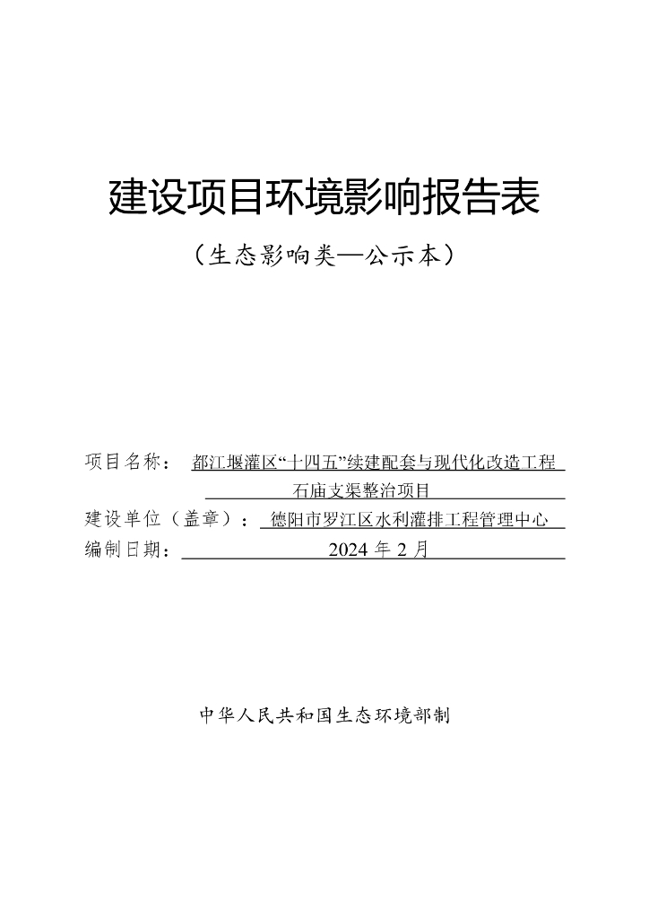 都江堰灌区“十四五”续建配套与现代化改造工程石庙支渠整治项目建设项目环境影响报告表(生态影响类——公示本).pdf