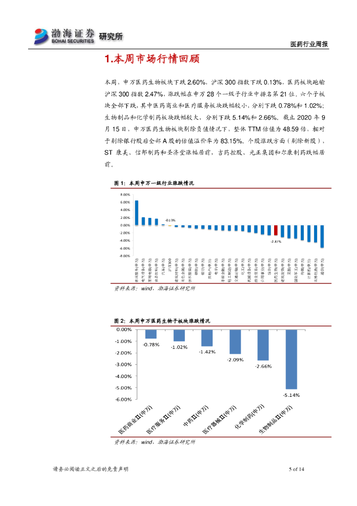 渤海证券:医药行业周报:医药板块继续回调,短期走势不改长期向好趋势.pdf