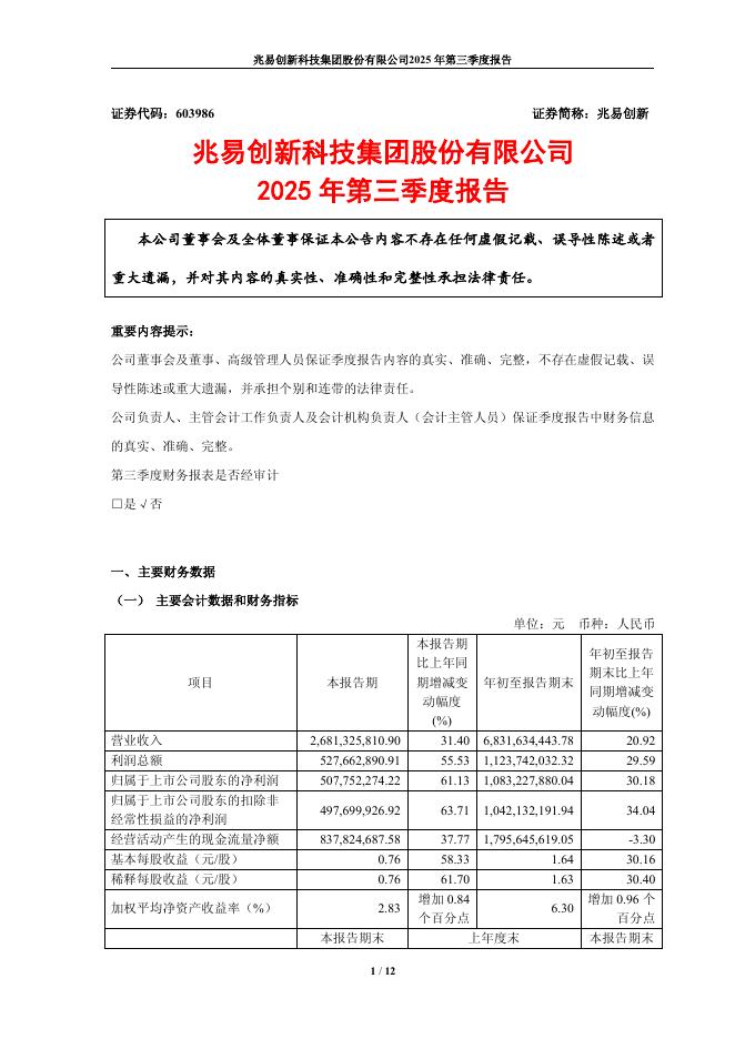 603986-兆易创新:兆易创新2025年第三季度报告.pdf