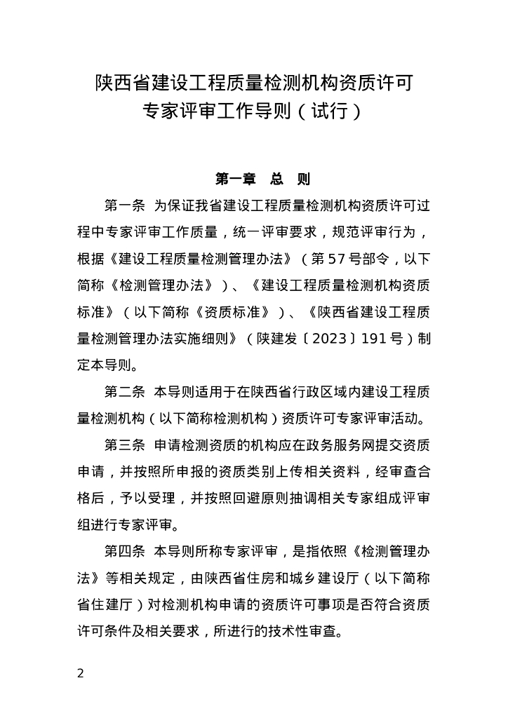 陕西省建设工程质量检测机构资质许可专家评审工作导则(试行).doc