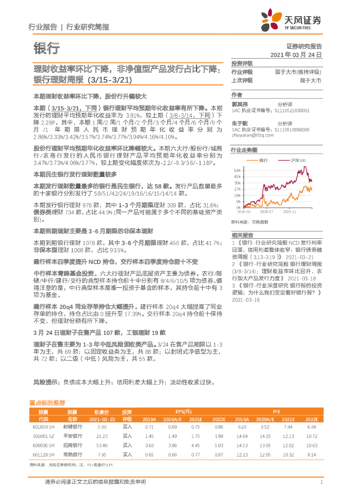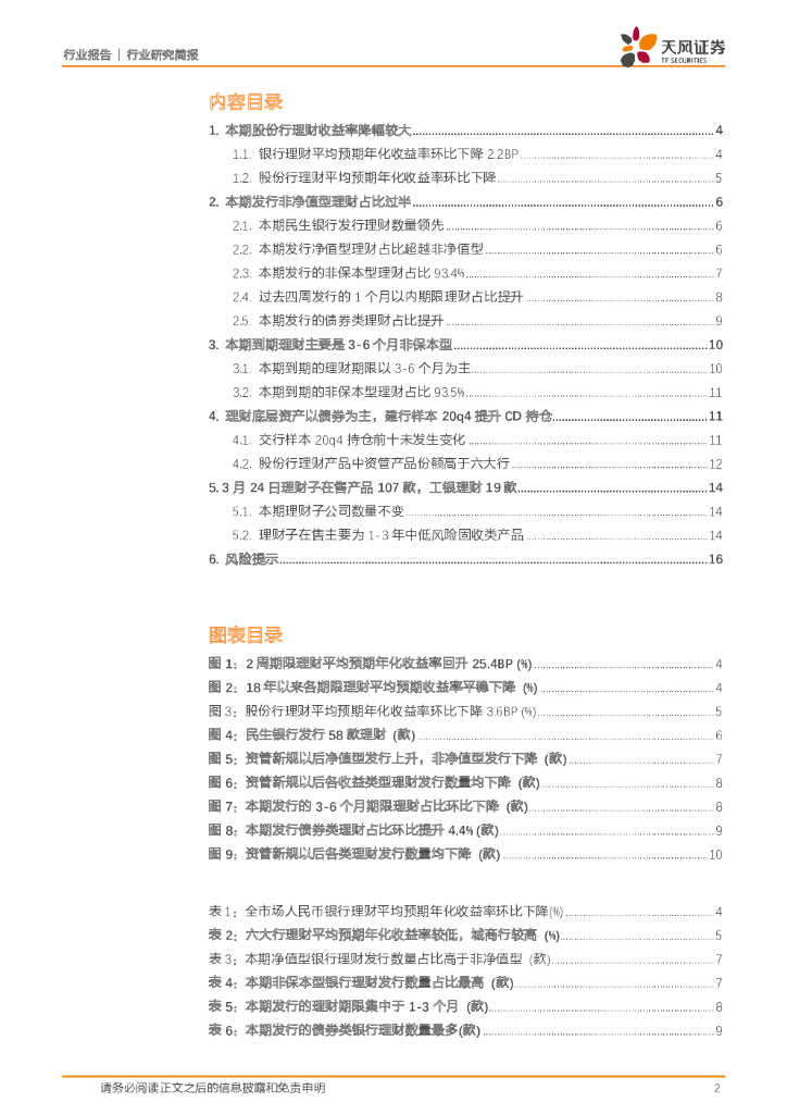 天风证券:银行理财周报:理财收益率环比下降,非净值型产品发行占比下降.pdf