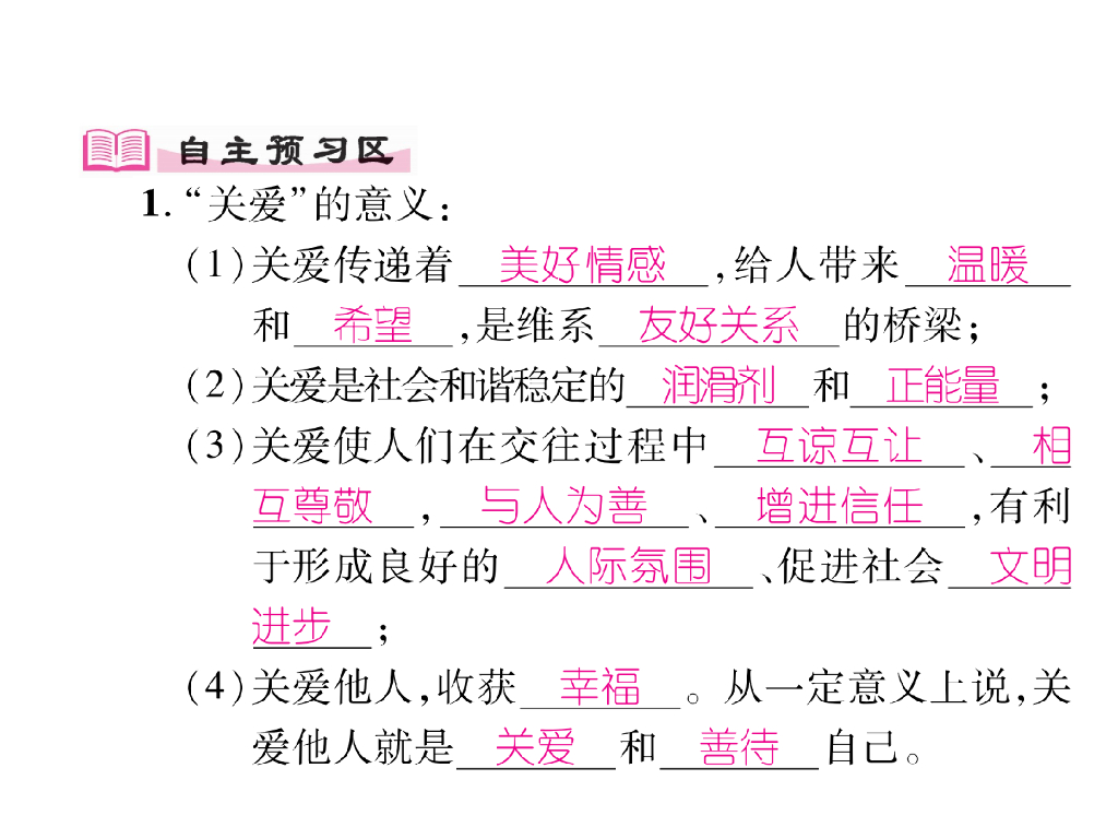 八年级道德与法治上册同步作业课件:第七课 积极奉献社会 第1课时 关爱他人 (21张).ppt