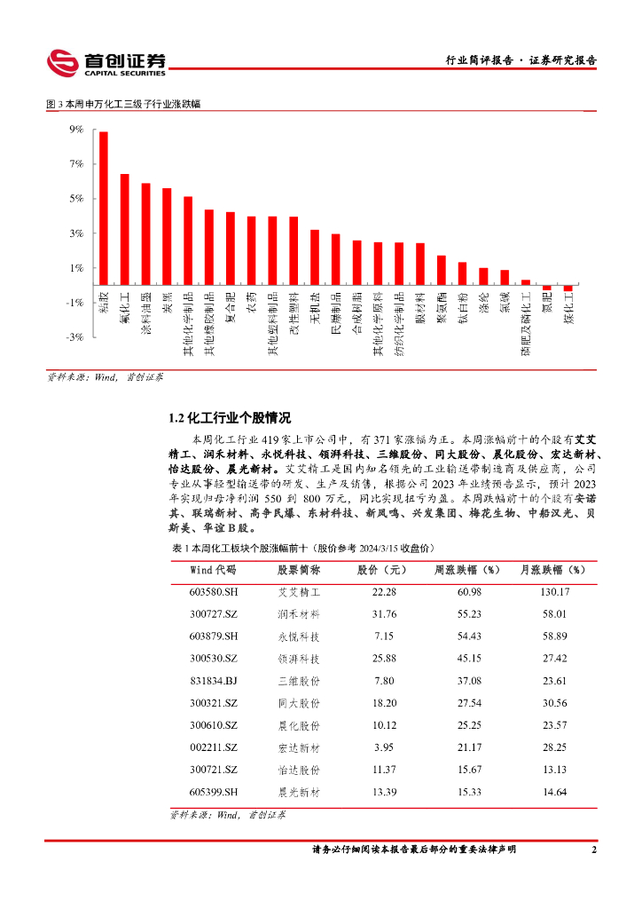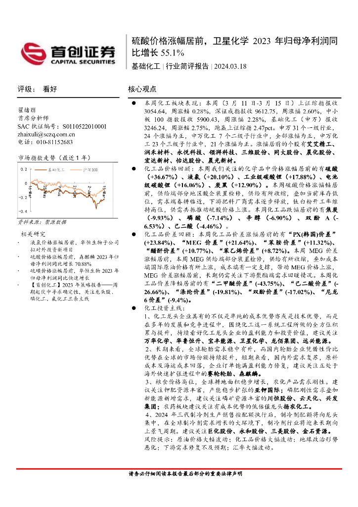 首创证券:基础化工行业简评报告:硫酸价格涨幅居前,卫星化学2023年归母净利润同比增长55.1%.pdf