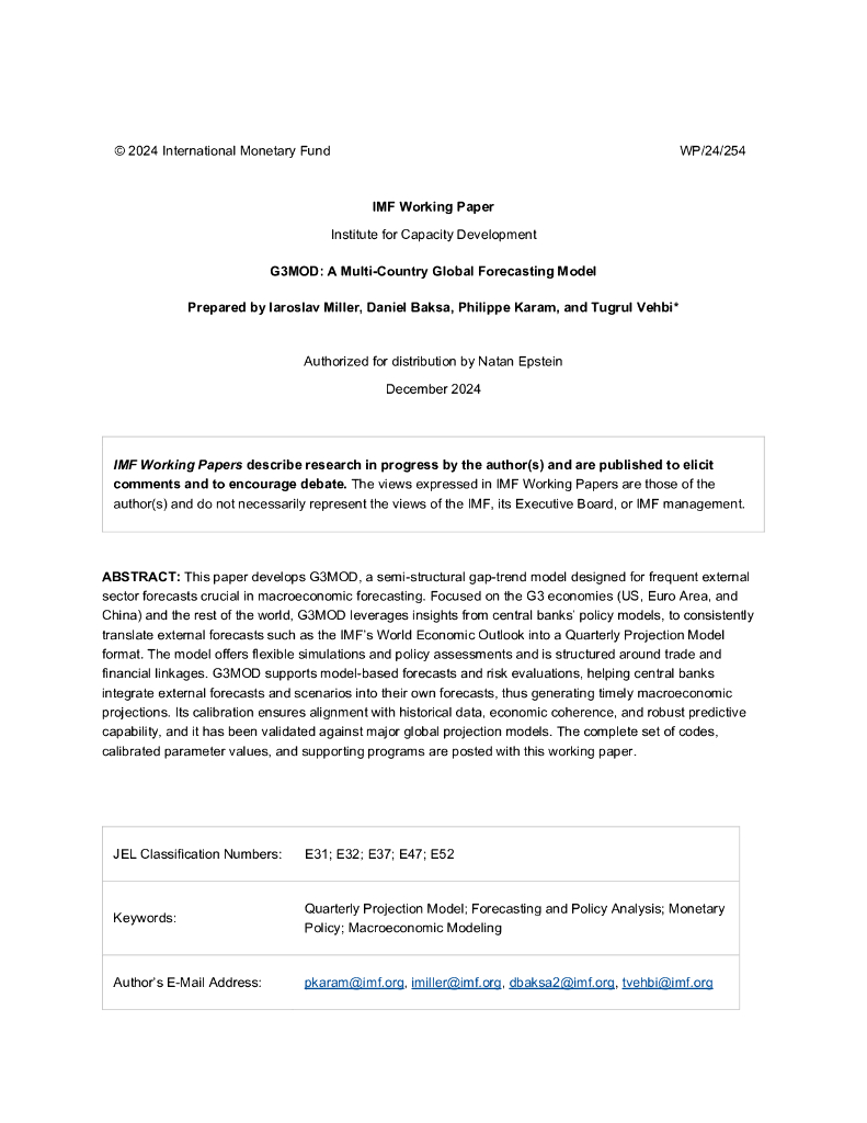 国际货币基金组织:2024年G3MOD:多国全球预测模型报告(英文版).pdf