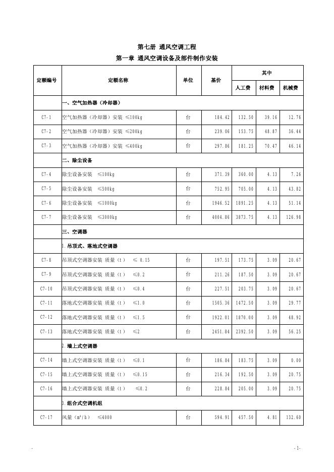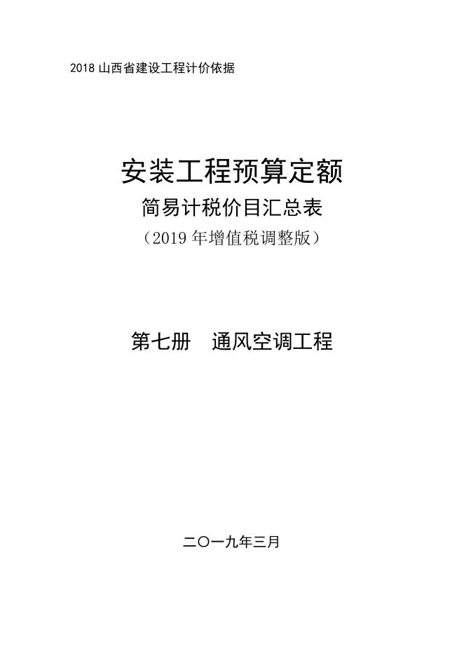 山西省安装工程预算定额 简易计税价目汇总表(2019年增值税调整版)第七册 通风空调工程.pdf