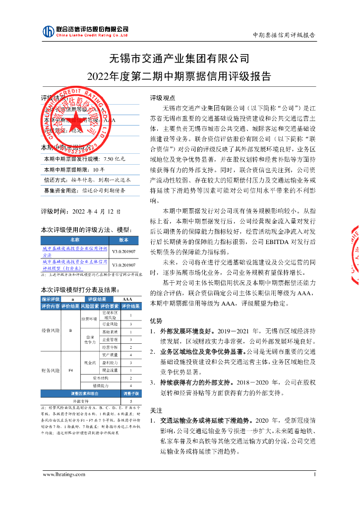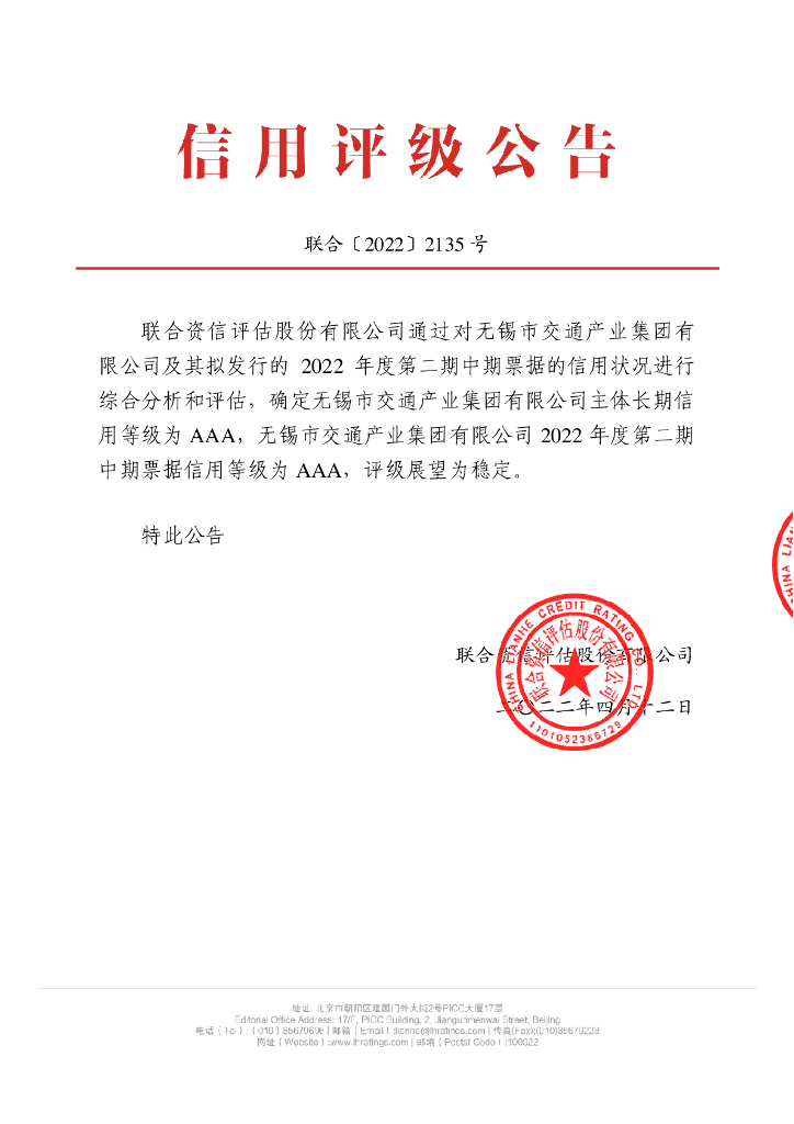 联合资信:无锡市交通产业集团有限公司2022年度第二期中期票据信用评级报告.pdf