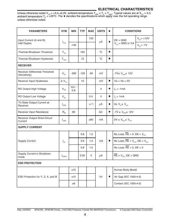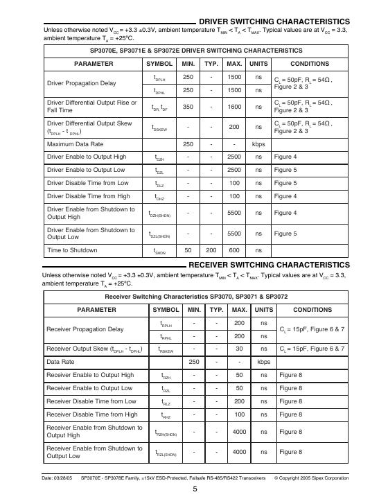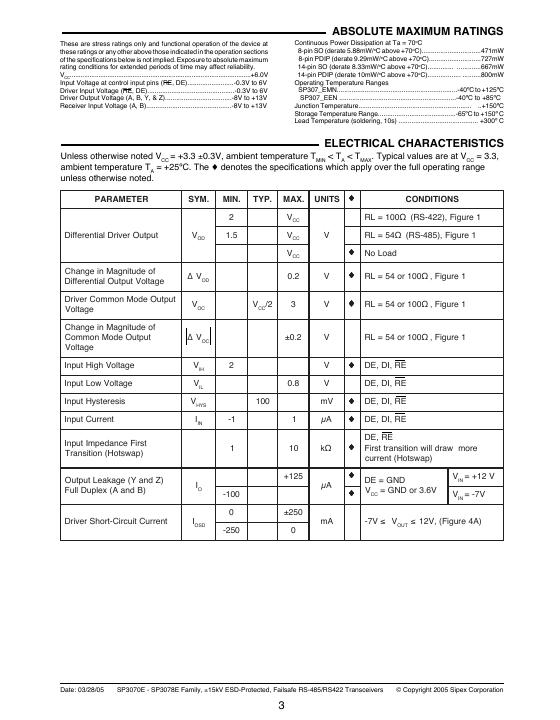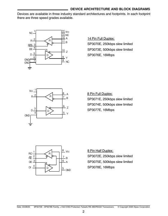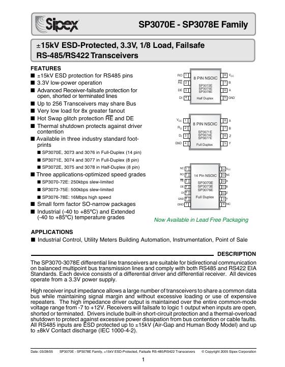 Sipex SP3070E - SP3078E Family Failsafe RS-485/RS422 Transceivers 数据手册.pdf