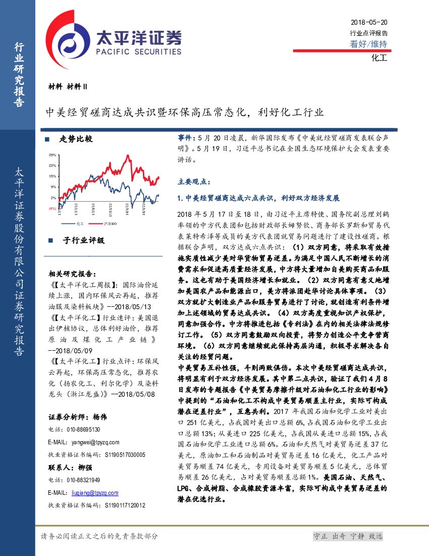 太平洋证券:化工:中美经贸磋商达成共识暨环保高压常态化,利好化工行业.pdf