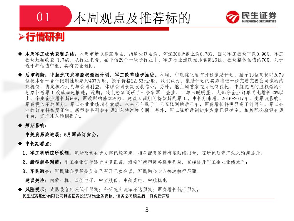 民生证券:国防军工行业周报:中航沈飞发布股权激励计划,军工改革稳步推进.pdf