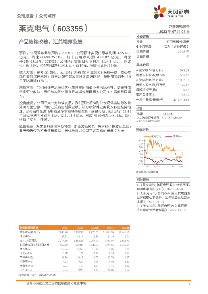天风证券:莱克电气(603355)-产品结构改善,汇兑增厚业绩.pdf