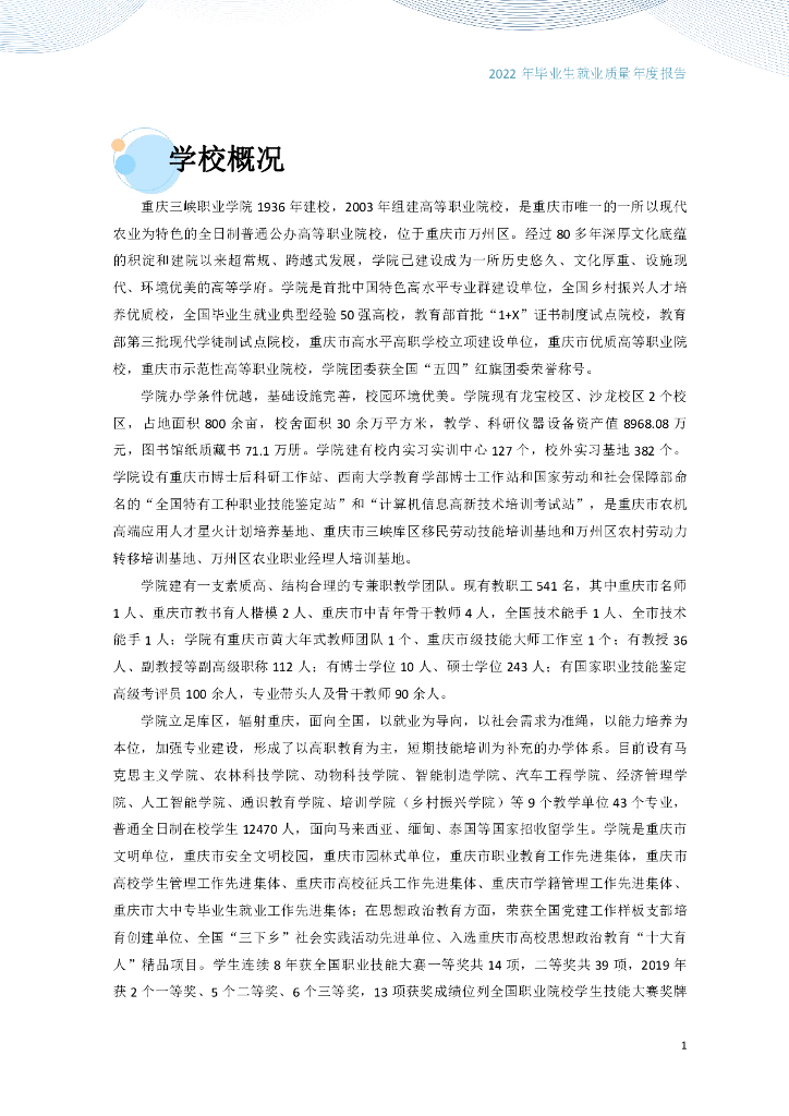 重庆三峡职业学院2022届毕业生就业质量报告.pdf