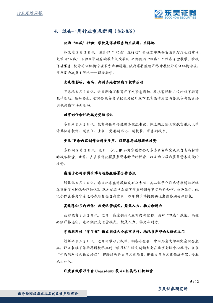 东吴证券:教育行业周报(2021年第30期):北京市停止义务教育阶段学科类暑期培训,多地“双减”政策陆续落地.pdf