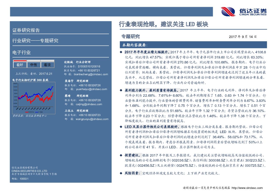 信达证券:电子行业专题研究:行业表现抢眼,建议关注LED板块.pdf