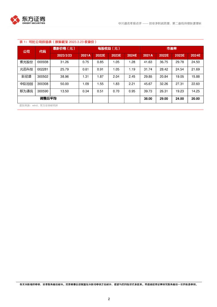 东方证券:中兴通讯2022年报点评:扣非净利润高增,第二曲线持续快速增长.pdf