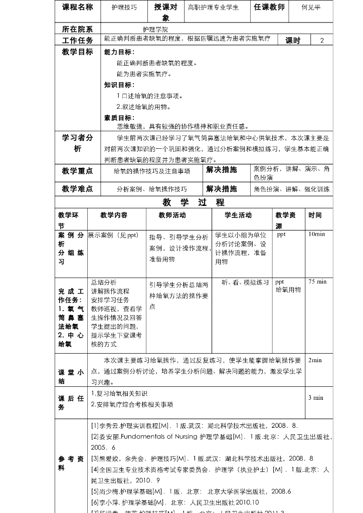 《护理技巧》电子教案-子任务三 氧疗法综合训练.pdf