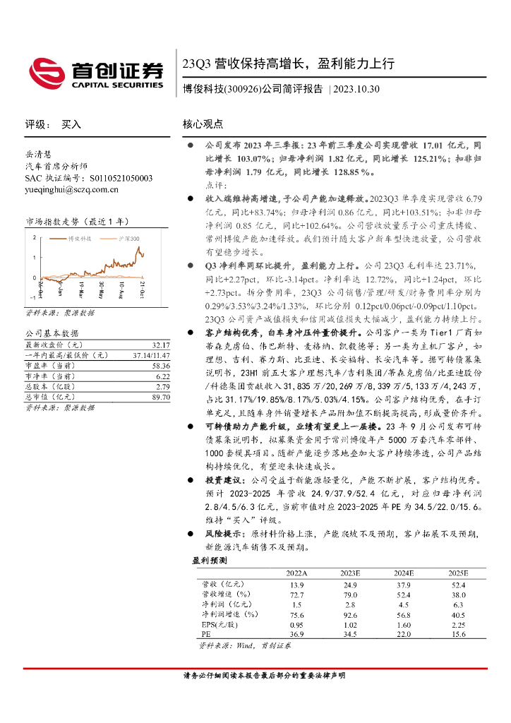 首创证券:博俊科技(300926)-公司简评报告:23Q3营收保持高增长,盈利能力上行.pdf